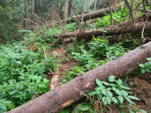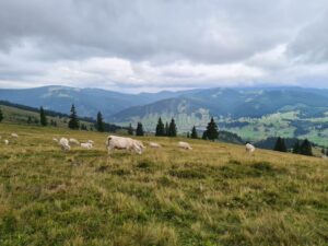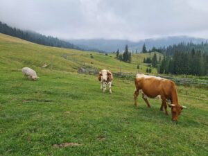 La cei 1.639 de metri ai săi, Vârful Oușoru nu pare unul prea dificil. Dar, uneori aceste aparențe pot înșela. În ciuda prognozelor care anunțau ploi pentru duminică, inclusiv un Cod Galben, am purces spre acest vârf cu încredere. Și, în final, s-a dovedit că în afara unor picături izolate vremea nu a fost potrivnică. Cu excepția faptului că Oușoru, care fie vorba între noi l-am urcat doar pe timp de iarnă până ieri, mi-a jucat o farsă și mă cheamă din nou la el. Pe tot traseul de pe Runc din Vatra Dornei și retur, care a durat ceva mai mult de 5 ore și jumătate, Oușoru s-a încăpățânat să fie misterior. Iar ceața care l-a învăluit încă de la primele ore ale dimineții nu l-a părăsit nici un moment. Bașca faptul că în vârf din ceață a început să și curgă, așa încât după 3 fotografii de control am făcut cale întoarsă. În afara acestui mic impediment, pot spune că a fost o zi relaxantă și extrem de plăcută. Iar unele priveliști spre bazinul Dornelor sau spre orașul-stațiune Vatra Dornei au fost de vis. Mi-a plăcut și faptul că am găsit multe animale, în special vaci, la pășunat pe munte. Înainte de ultima porțiune de traseu, urcarea pieptișă spre vârf, sunt și două stâne, iar două vaci care pășteau alături de un porc sunt un semn că viața la munte încă mai păstrează elemente sănătoase. Singurul aspect negativ din tot traseul a fost urcarea prin pădure pe ultima porțiune, unde în mai multe locuri poteca era blocată efectiv de copaci căzuți la pământ. Dar, uneori și echilibristica pe copaci sau pe sub aceștia poate fi interesantă.
