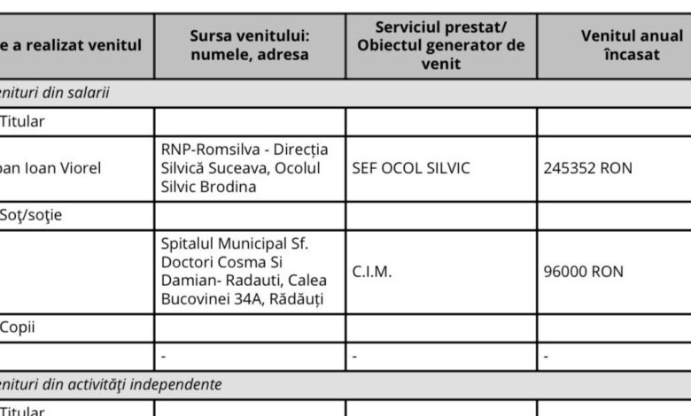 Notă: în fotografie este declarația de avere depusă în 2023 pentru câștigurile din 2022